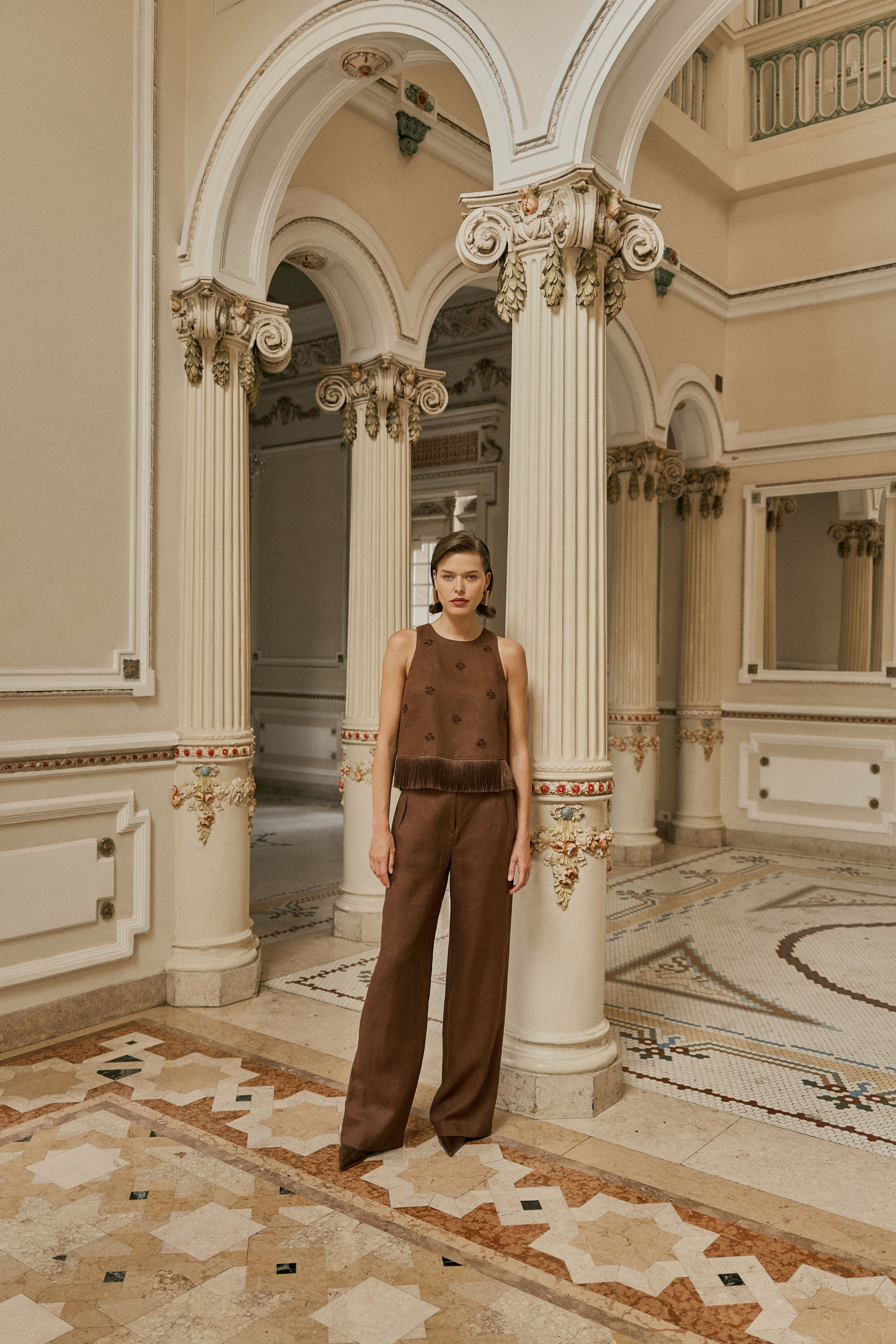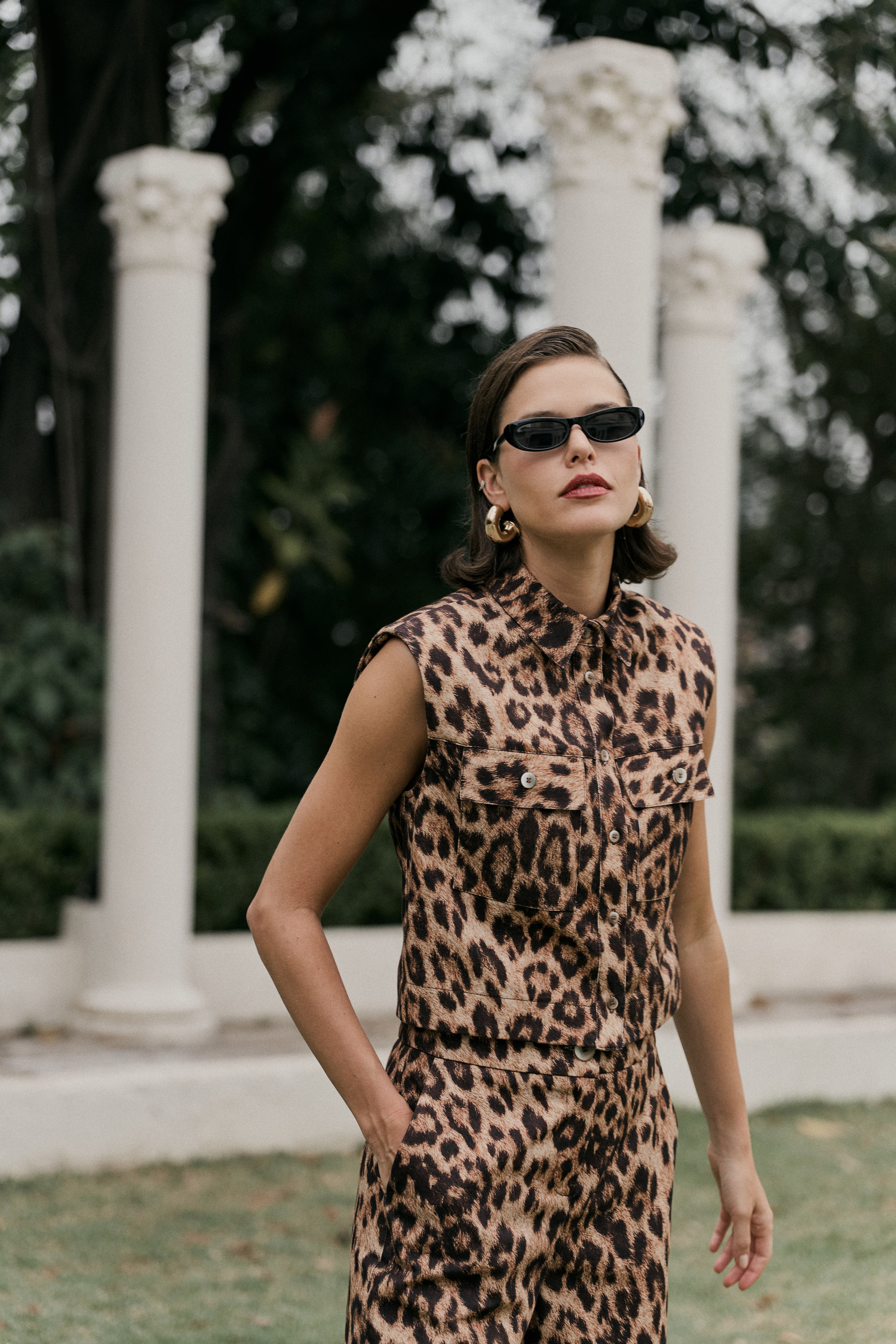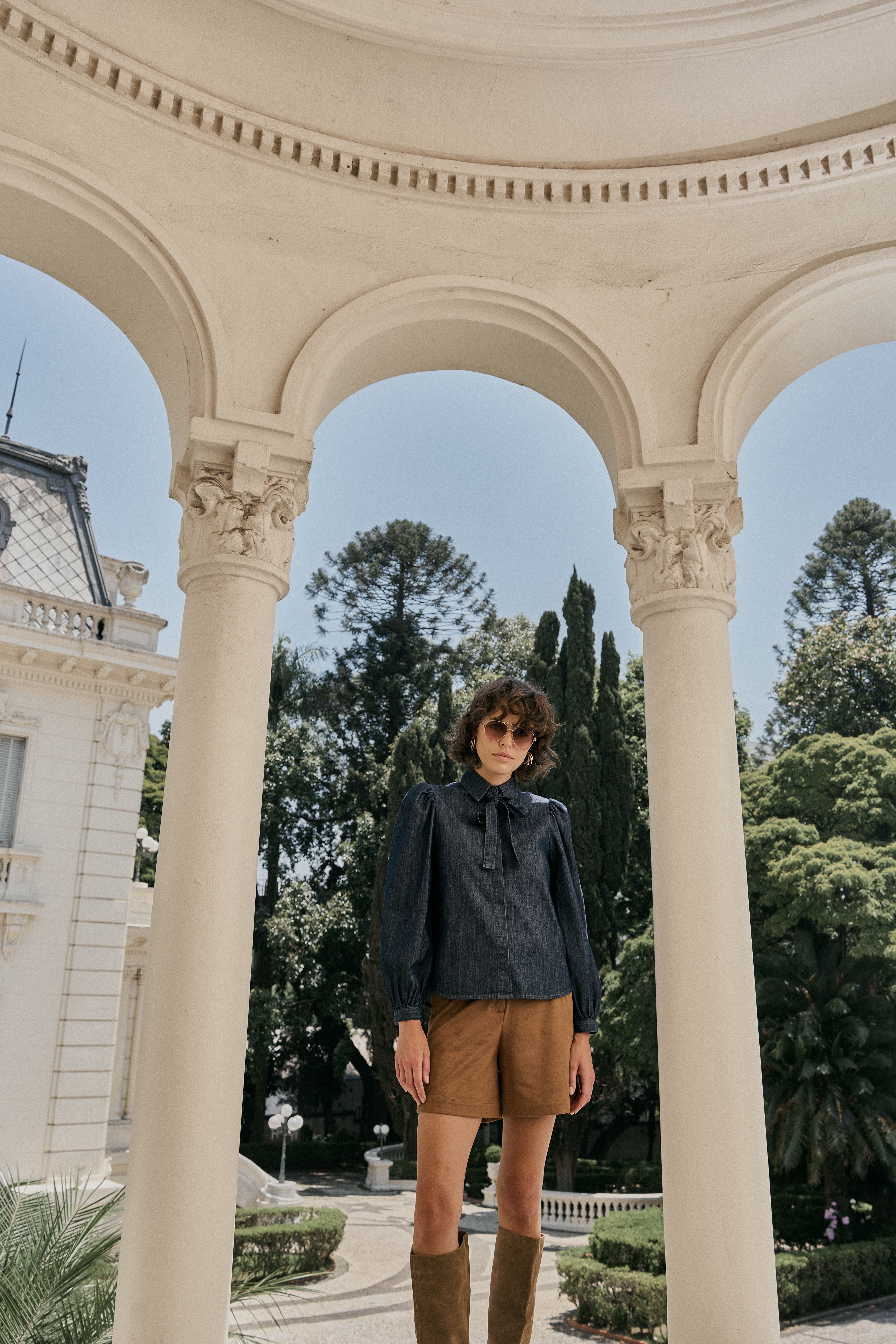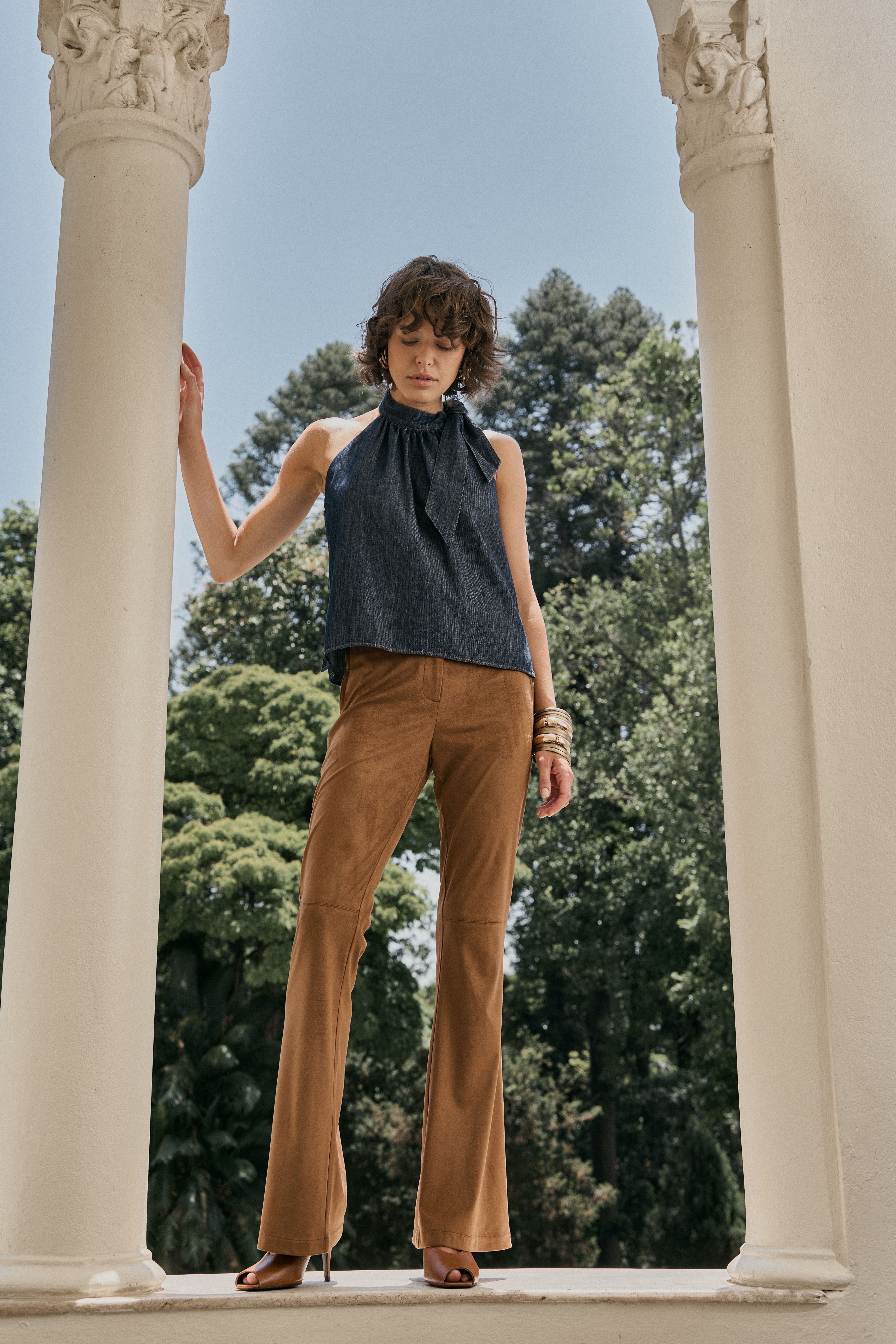 O linho natural abraça as cores densas do inverno; o suede leve encontra o denim; as estampas de bicho selam a assinatura de coragem. Tudo junto, tudo misturado, mas guiado por um olhar sofisticado de quem conhece sua própria força.